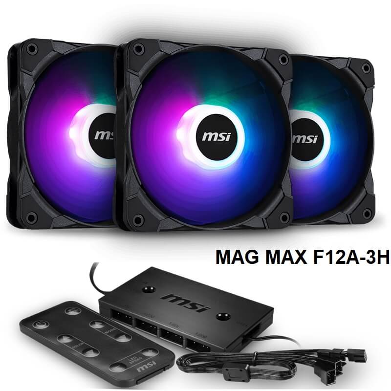 - MSi MAG MAX F12A 3H FAN PC Case 4pin PWM Anti Vibration Pads 3in1 RGB Controller Pack