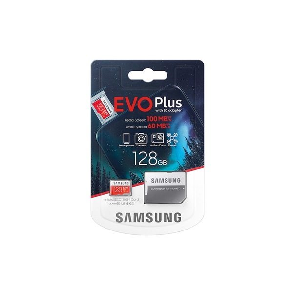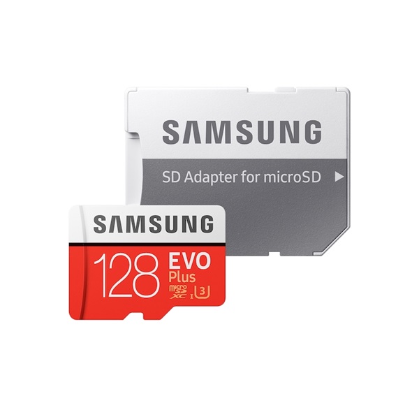 - بطاقة ذاكرة سامسونج EVO Plus microSD سعة ١٢٨ جيجابايت مع محول إس دي، ١٠٠ ميجابايت / ثانية