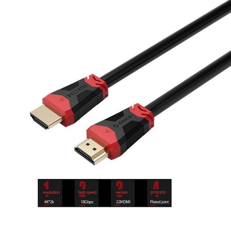 ORICO HDMI High Definition Cable (M/M) 5Meter, Gold Plated, HDMI2.0, 4K, 60Hz, PVC Coating, 7.3mm, Gauge: 30AWG, (HD303-50-BK)
