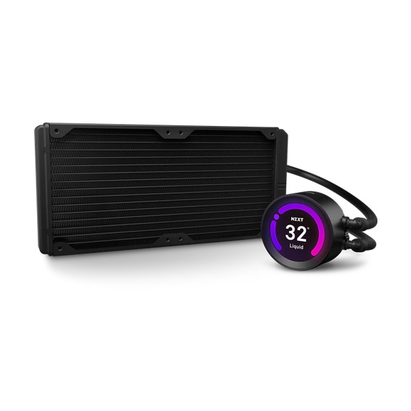 شاشة LCD مقاس 2.36 بوصة قادرة على عرض ألوان 24 بت تخصيص العرض باستخدام عناصر تحكم NZXT CAM البديهية موصل NZXT RGB لملحقات NZXT RGB مروحتان للرادياتير Aer RGB 2 مقاس 140 مم مع محمل ديناميكي سائل تعمل الأكمام الشبكية الدقيقة المصنوعة من النايلون على تقوية الأنابيب المطاطية للحماية من التسربات نموذج طلب LGA 1700 Bracket يمكن ضبط اتجاه العرض داخل CAM من الافتراضي إلى -90 درجة