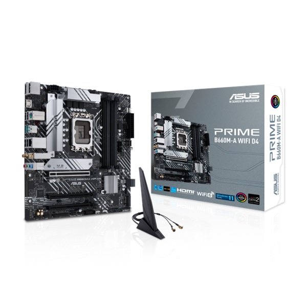 يوفر ASUS PRIME B660M-A WIFI D4 بنية أنيقة ذات مظهر مستقبلي بلمسة نهائية باللونين الأسود والأبيض ، وعناصر تصميم مستوحاة من مكوك الفضاء ، ولوحة اسم معدنية وغطاء PCB.