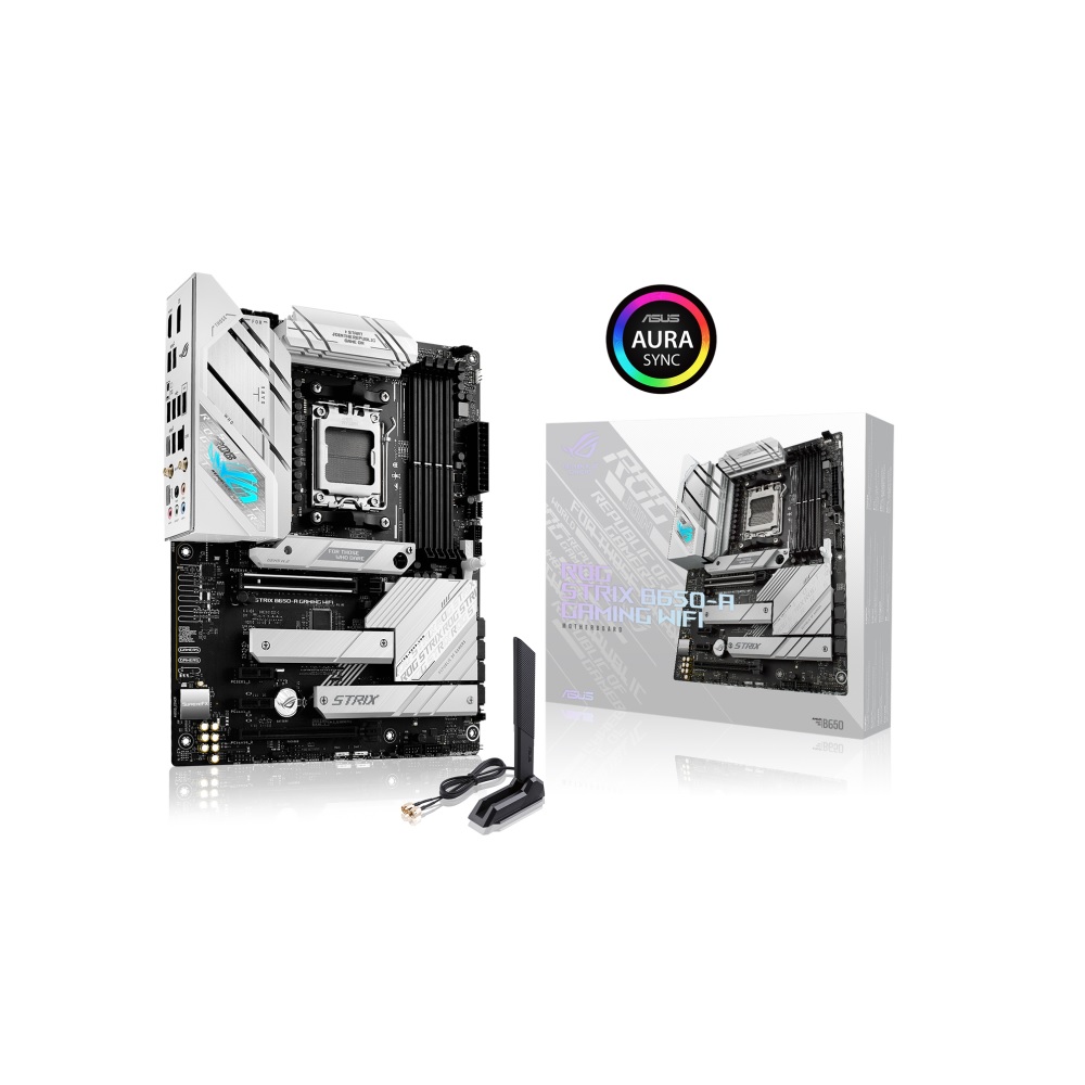 توفر جمالية جريئة باللونين الفضي والأبيض مع اندفاعة من إضاءة RGB تصميمًا يبدو مستقبليًا مثل مجموعة ميزاته. يتم توضيح مزيج من الشكل والوظيفة من خلال درع I / O المتقطع ، والذي يسمح بتدفق هواء إضافي بالمرور عبر قنوات المبدد الحراري VRM أدناه. يشتمل هذا التصميم على M.2 ومبددات حرارة مجموعة الشرائح أيضًا ، ويرتبط المظهر بالكامل مع شارات تتمحور حول اللعبة. قم بإقران Strix B650-A مع منتجات أخرى من نظام ROG البيئي المتنوع لإنشاء إعداد ألعاب مخصص بالكامل يعكس أسلوبك الشخصي.