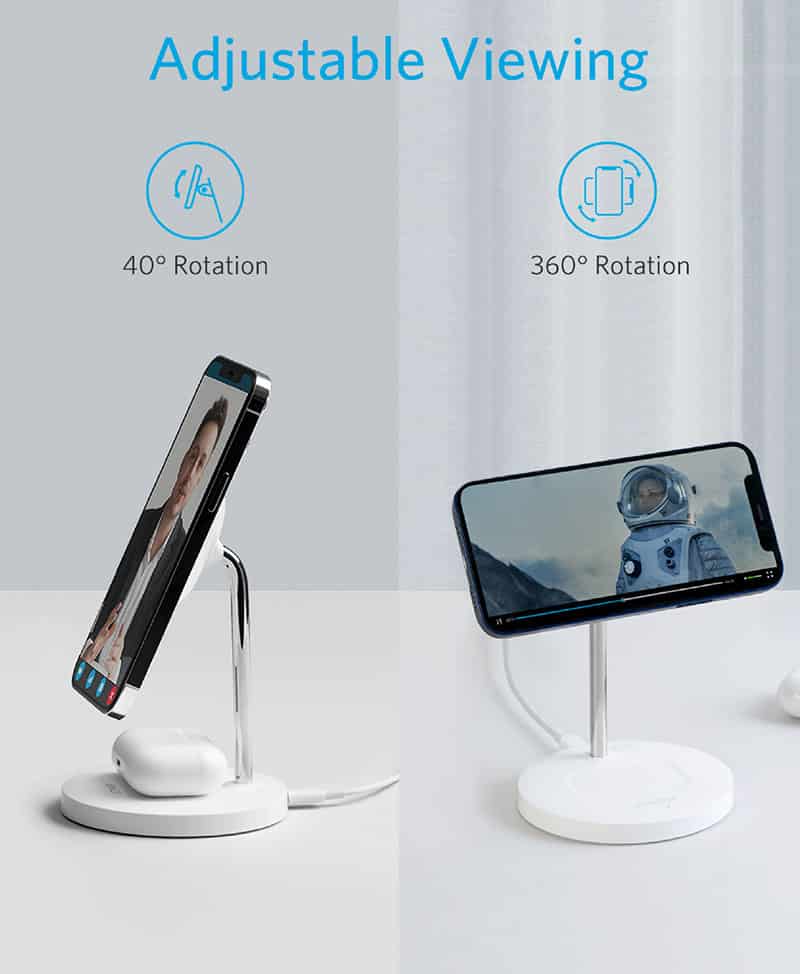 حامل الشحن اللاسلكي أنكر باور ويف مغناطيسي 2 في 1 لايت – أبيض