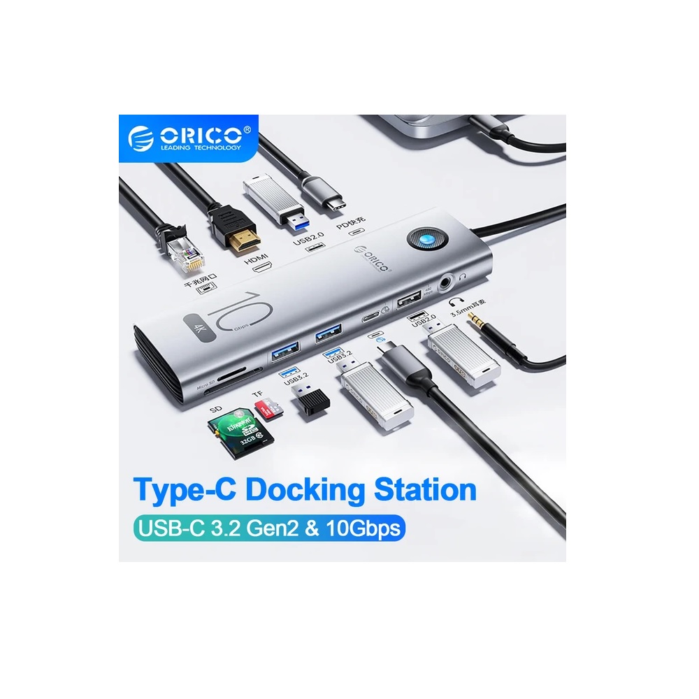 - Orico CX1011P USB-C Hub متعدد المنافذ 11in1 محطة إرساء، HDMI 4K 60 هرتز