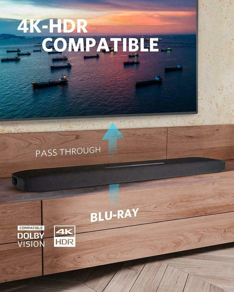 أنكر - ساوند كور إنفيني برو (أتموس) - أسود‌ أوضاع الصوت المخصصة: اختر من وضع الفيلم أو الموسيقى أو الصوت لتحسين صوت Infini Pro للوسائط التي تشاهدها أو تستمع إليها. خيارات إدخال متعددة الاستخدامات: اختر من بين اتصالات HDMI أو HDMI ARC أو البصرية أو Bluetooth 5.0. يدعم أيضًا تمرير 4K HDR وDolby Vision إلى أجهزة تلفزيون 4K. تصميم نحيف: يبلغ طول جسم Infini Pro المنخفض الانسيابي 36 بوصة، وهو ملفوف بقماش أسود غير ظاهر للسماح له بالاندماج بسهولة مع التصميم الداخلي الخاص بك.