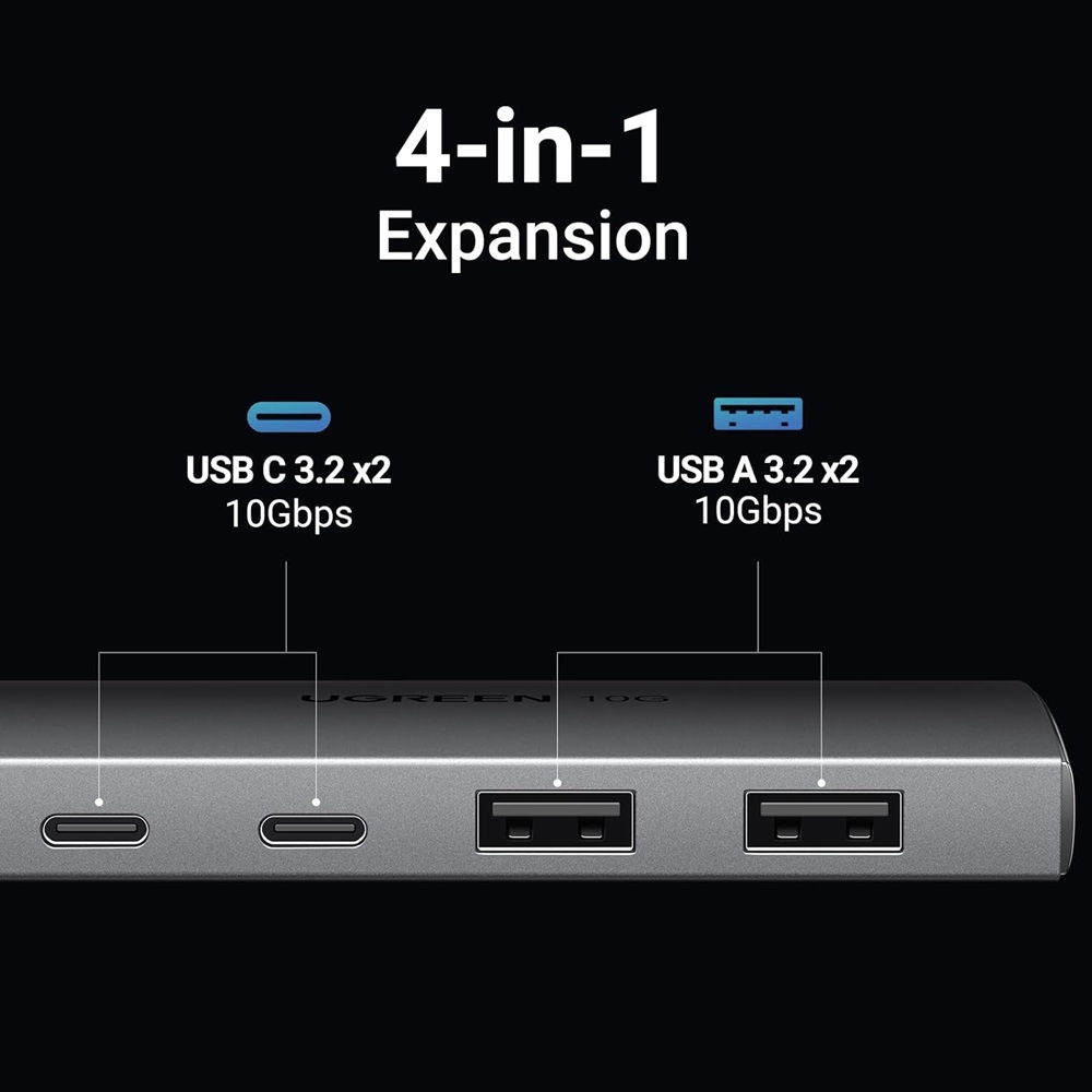 - يوجرين CM480 موزع USB-C 4 منافذ، 2 نوع C، 2 نوع A، USB 3.2، 10 جيجابت في الثانية