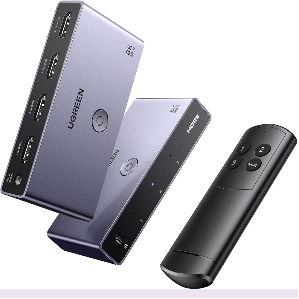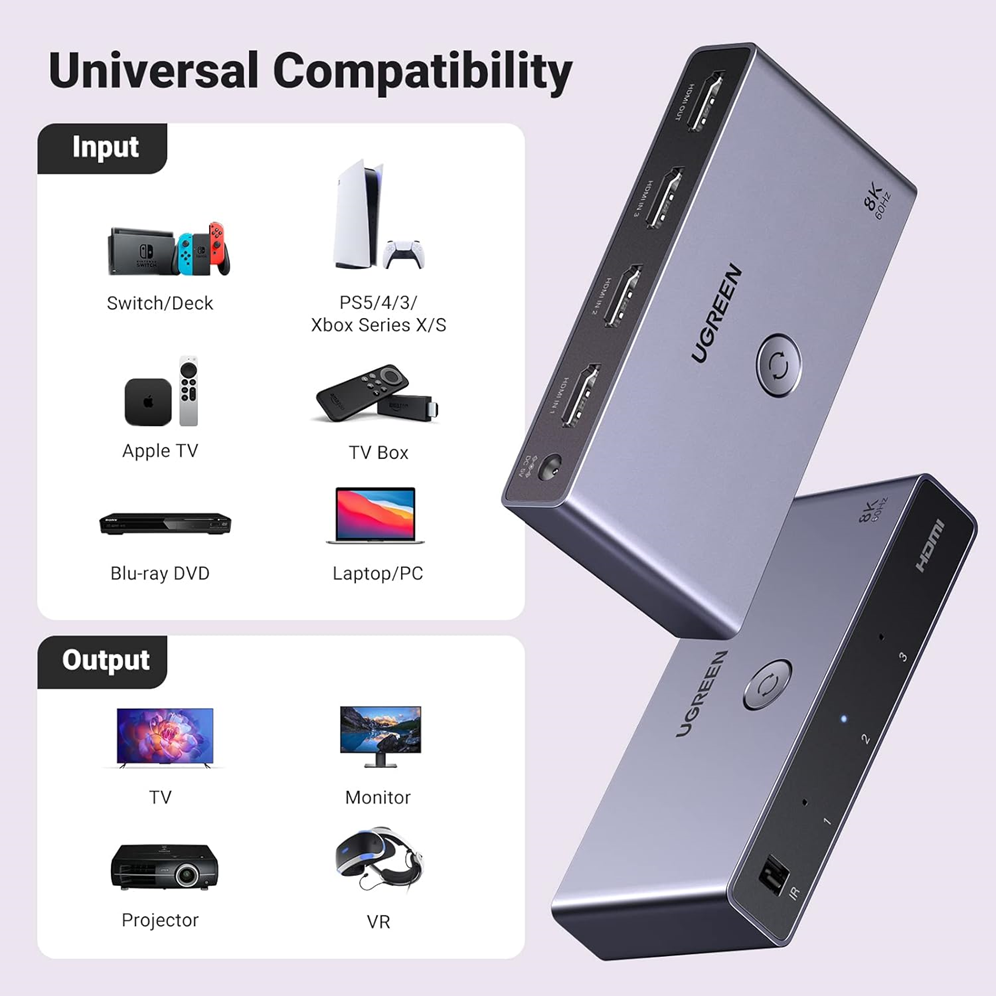 UGREEN CM624 HDMI 2.1 3 منافذ محول ألومنيوم فائق الدقة 8K@60 هرتز 3 في 1 مخرج