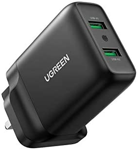 UGREEN 36W Dual USB Wall Charger QC 3.0/FCP UK (Black) English Color Box With Hook"