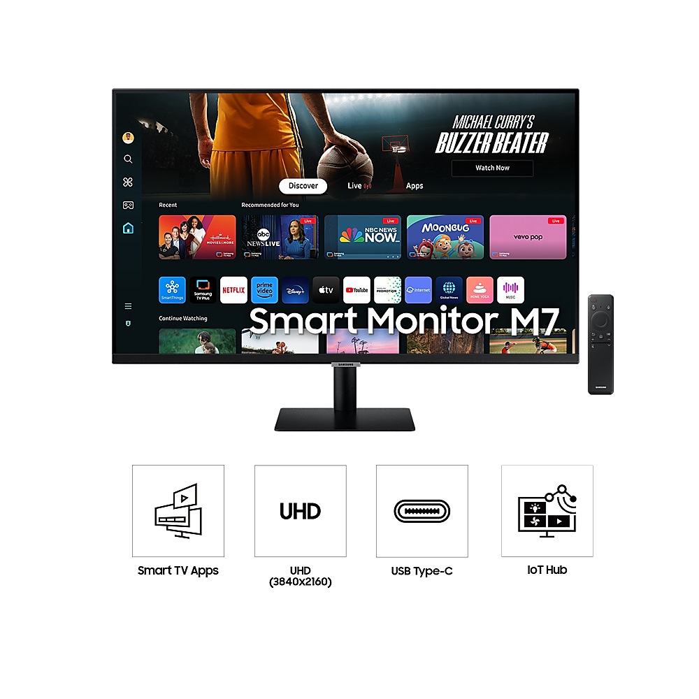 - شاشة ذكية من سامسونج DM702U مقاس 32 بوصة بدقة 4K وتردد 60 هرتز ووقت استجابة 4 مللي ثانية ومنفذ USB-C وقوة 65 وات ومكبر صوت، 32M7
