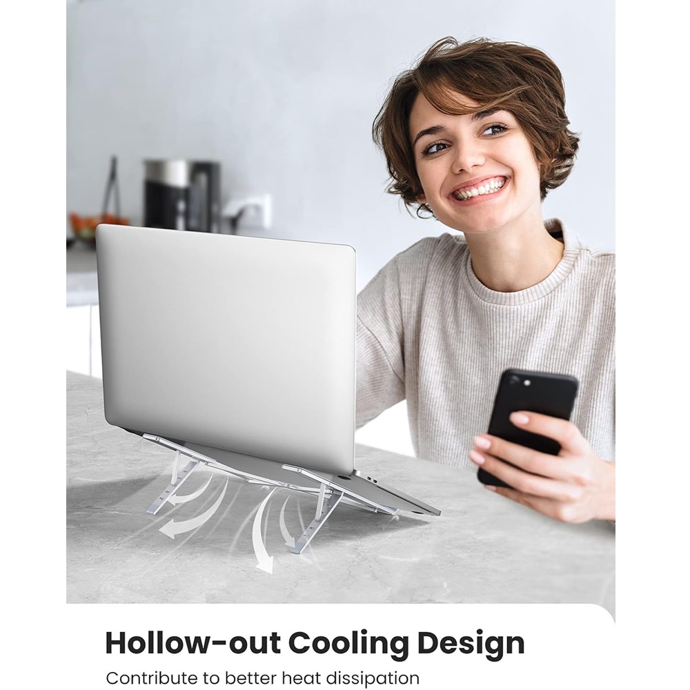- 5 levels height adjustment: UGREEN aluminium laptop stand has 5 levels, perfect for holding laptops and large tablets such as iPad Pro. Provides you with the most ergonomic typing position as well as the best camera position for video conferencing.