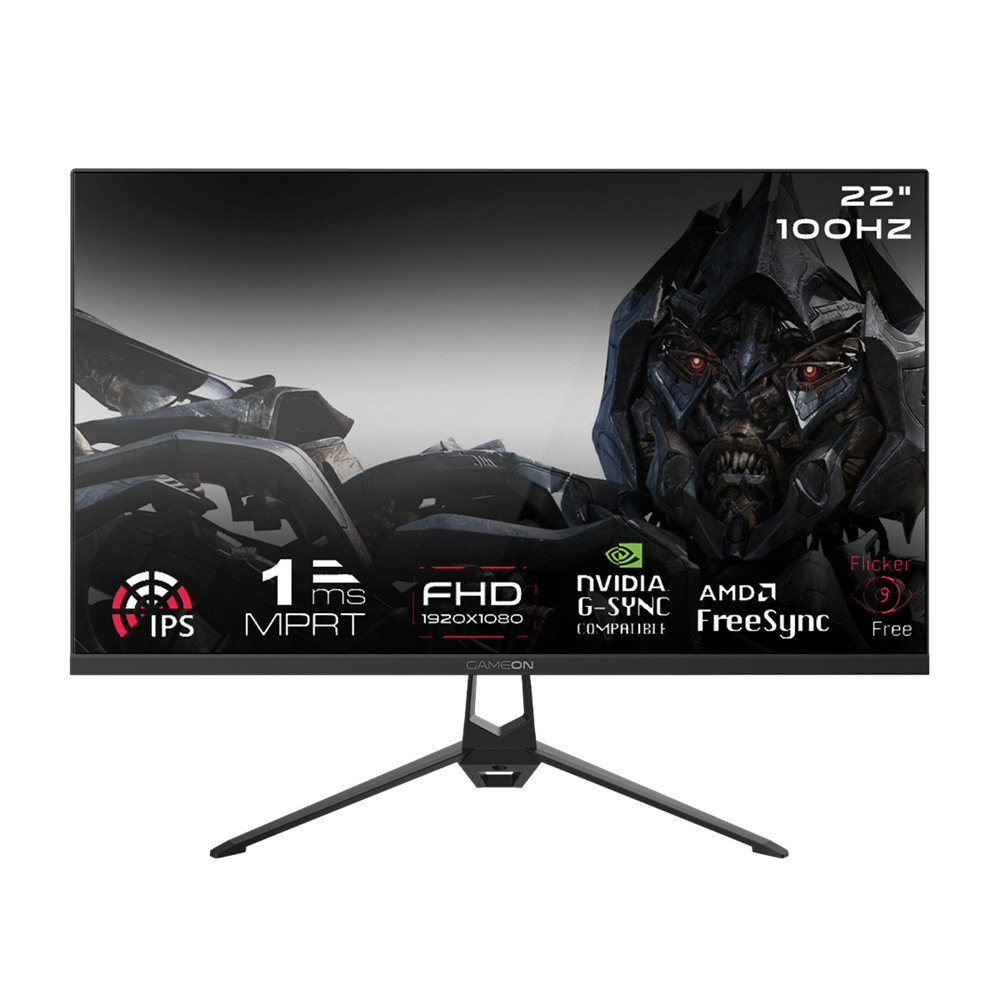 شاشة الألعاب GameOn ES22FHD100IPS مقاس 22 بوصة، بتردد 100 هرتز، لوحة IPS سريعة، زمن استجابة 1ms، منفذ HDMI 2.1