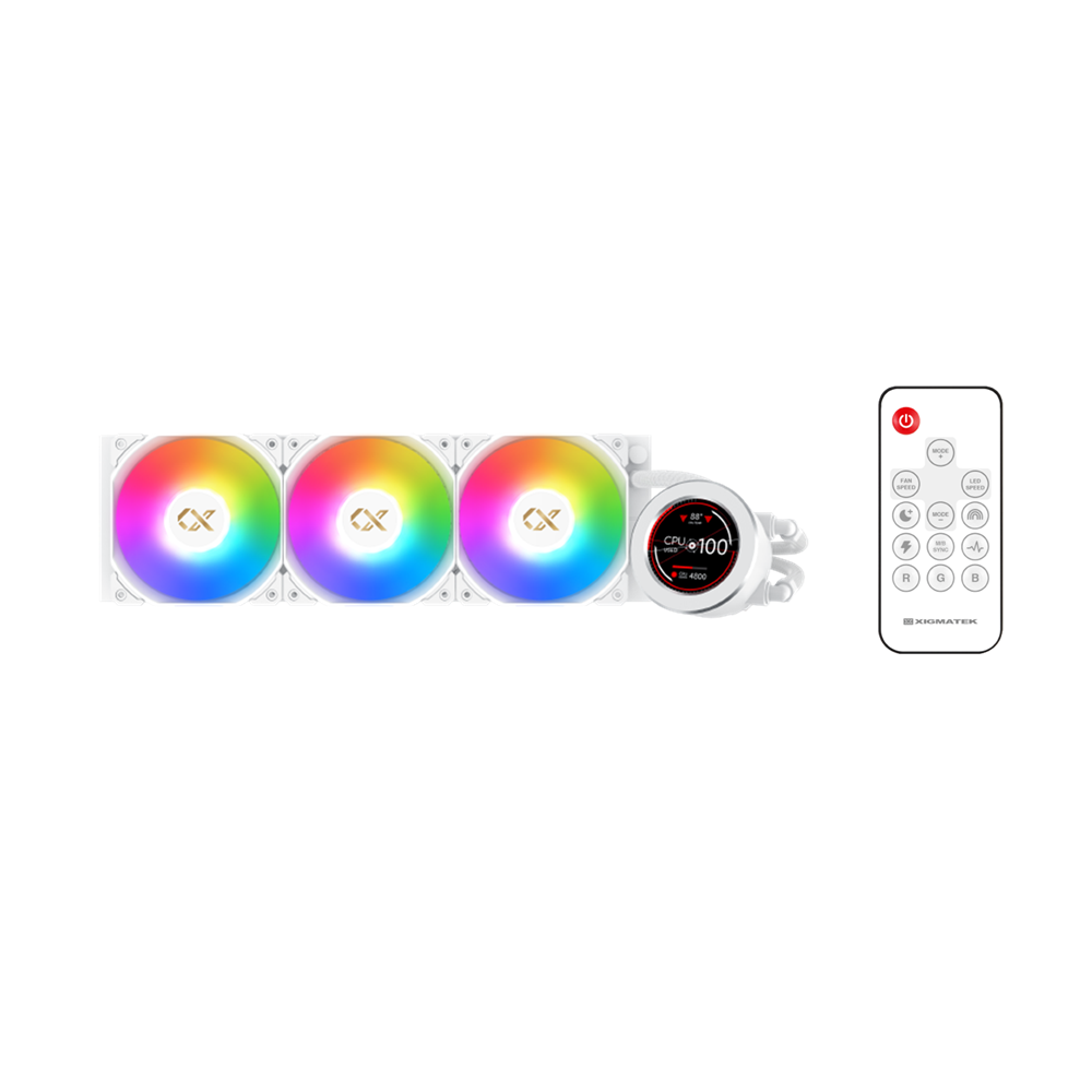 - نظام التبريد السائل Xigmatek Frozr-O II 360 AIO مع رأس مضخة بشاشة LCD – أبيض.