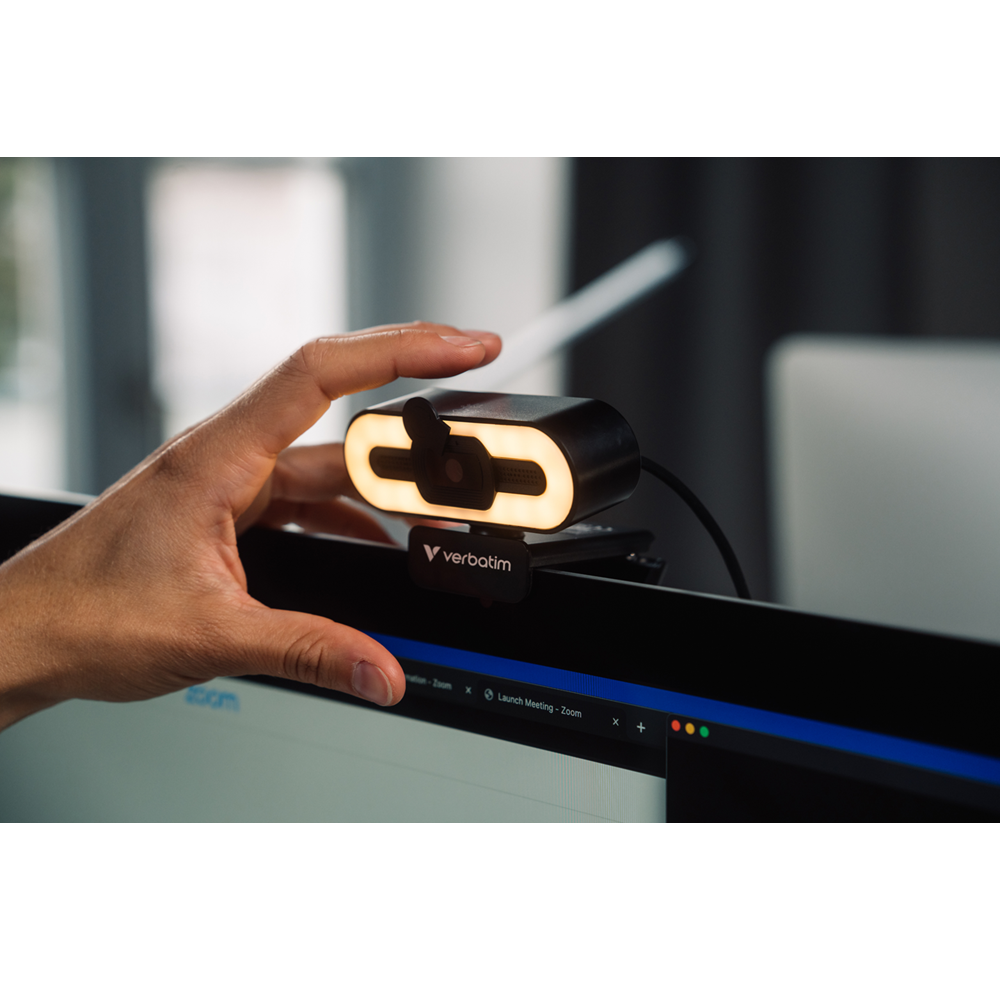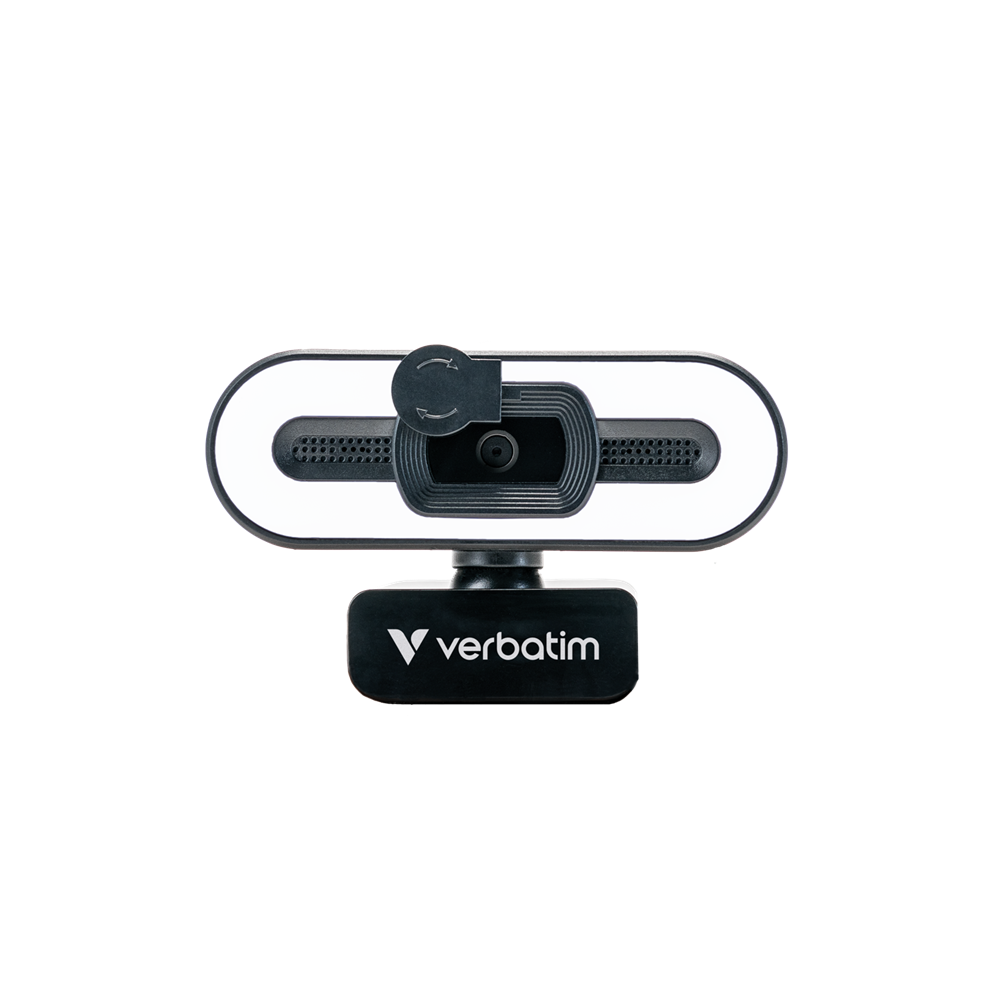 كاميرا ويب Verbatim 49579 FHD مع ميكروفون وإضاءة، تركيز تلقائي، غالق خصوصية، موديل AWC-02.