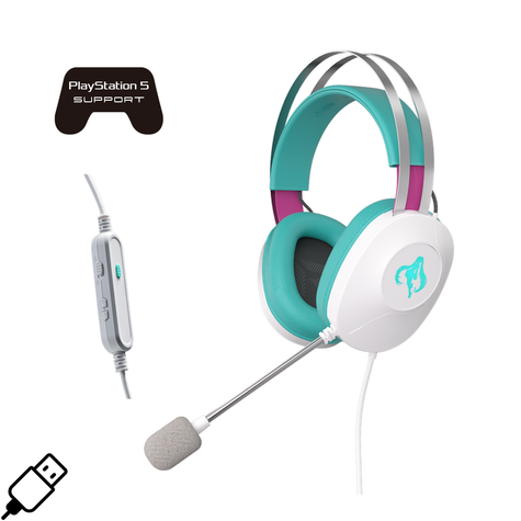 - سماعة الألعاب السلكية ASUS A303 TUF Gaming H1 Gen II إصدار Hatsune Miku بمنفذ USB