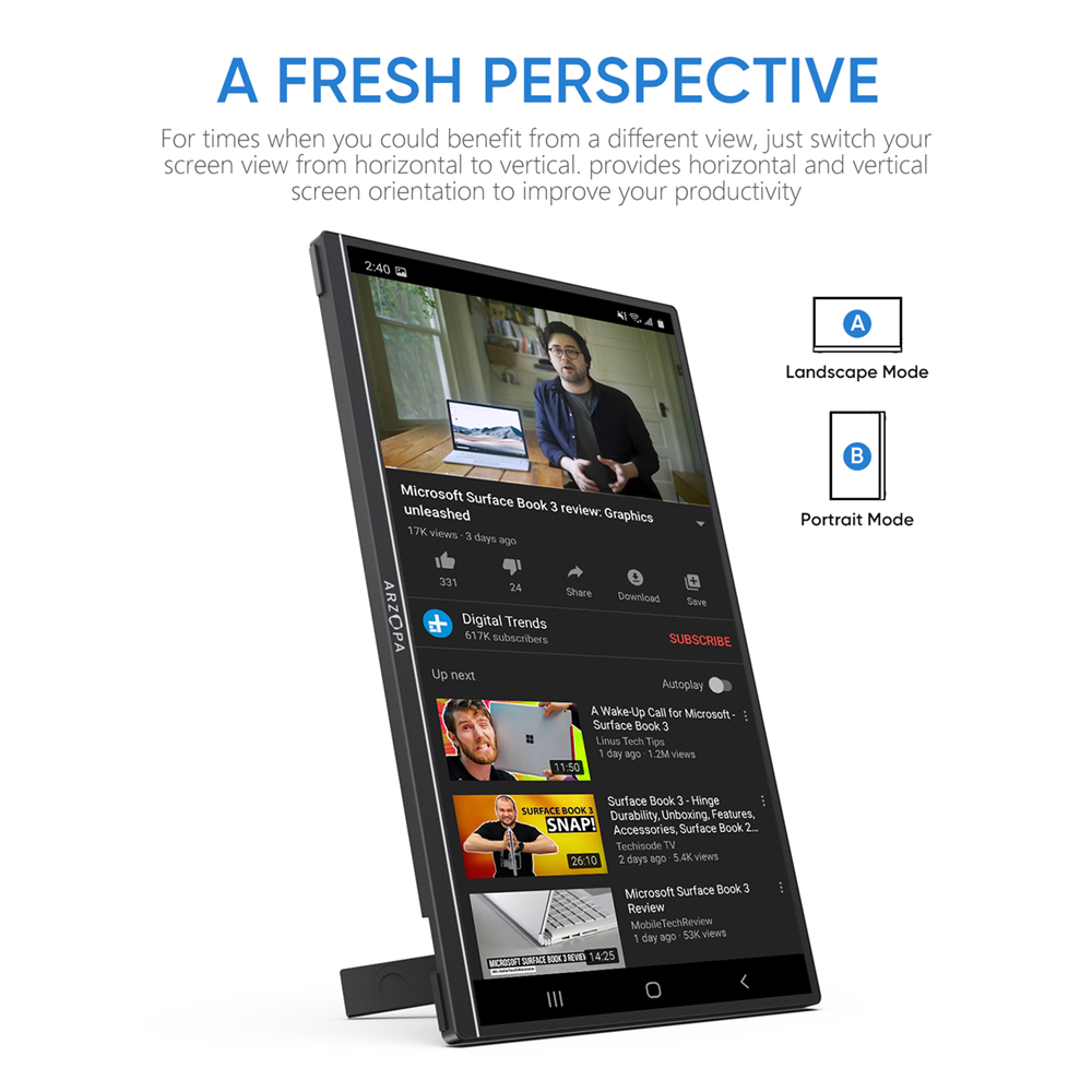 - شاشة محمولة Arzopa A1S مقاس 14 بوصة فائقة النحافة بدقة FHD ولوحة IPS مع سماعات، USB-C وMini HDMI