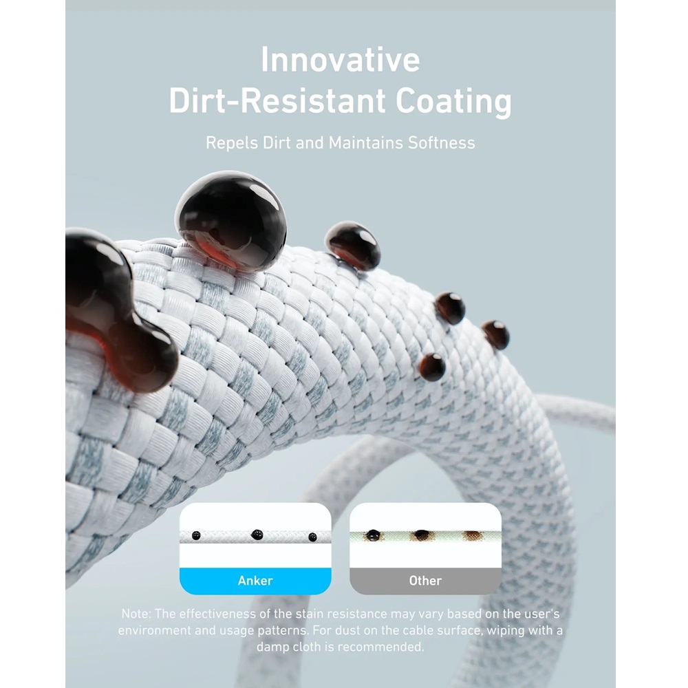 كابل الشحن السريع المضفّر Anker 8060 Zolo من USB-C إلى USB-C بقدرة 240 واط بطول 3.3 قدم (1 متر) – أبيض، A8060H21