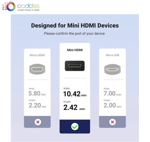 توافق شامل: يعمل مع جميع الأجهزة المزودة بمنفذ Mini HDMI.
