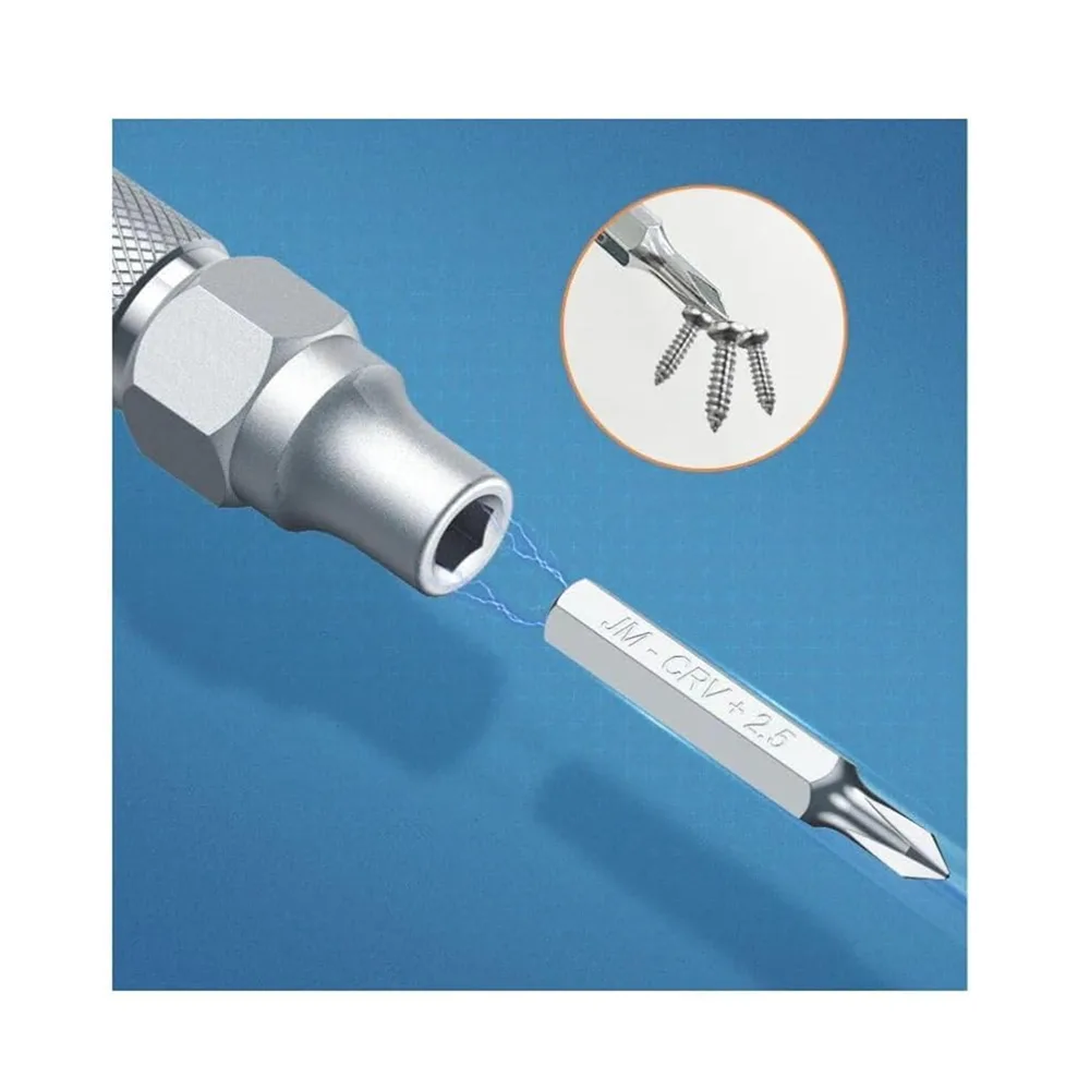 • حامل رؤوس مغناطيسي: يثبت البراغي والرؤوس بإحكام، مما يمنع سقوطها أو فقدانها أثناء عمليات الإصلاح الدقيقة.
