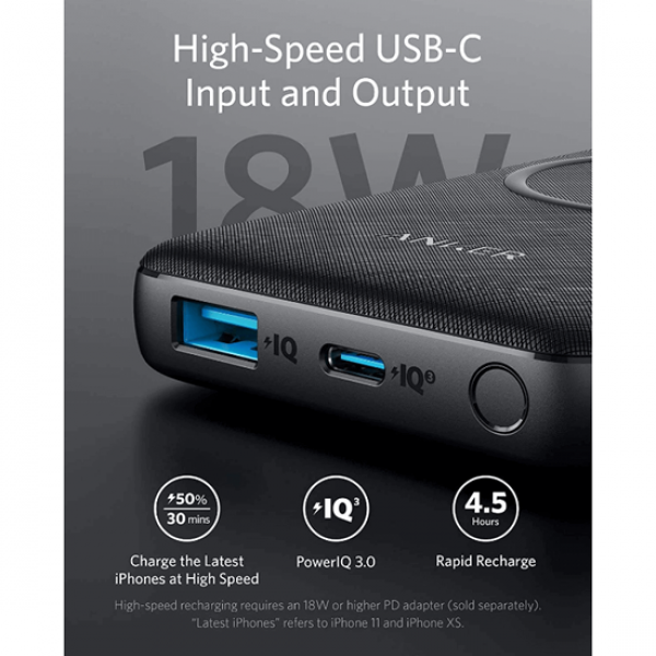 Power Bank from Anker Wireless Charging Qi-certified charging of up to 10W lets you fully charge your iPhone 11 in less than 4 hours no matter where you are It features an 18W Power Delivery port and an 18W USB