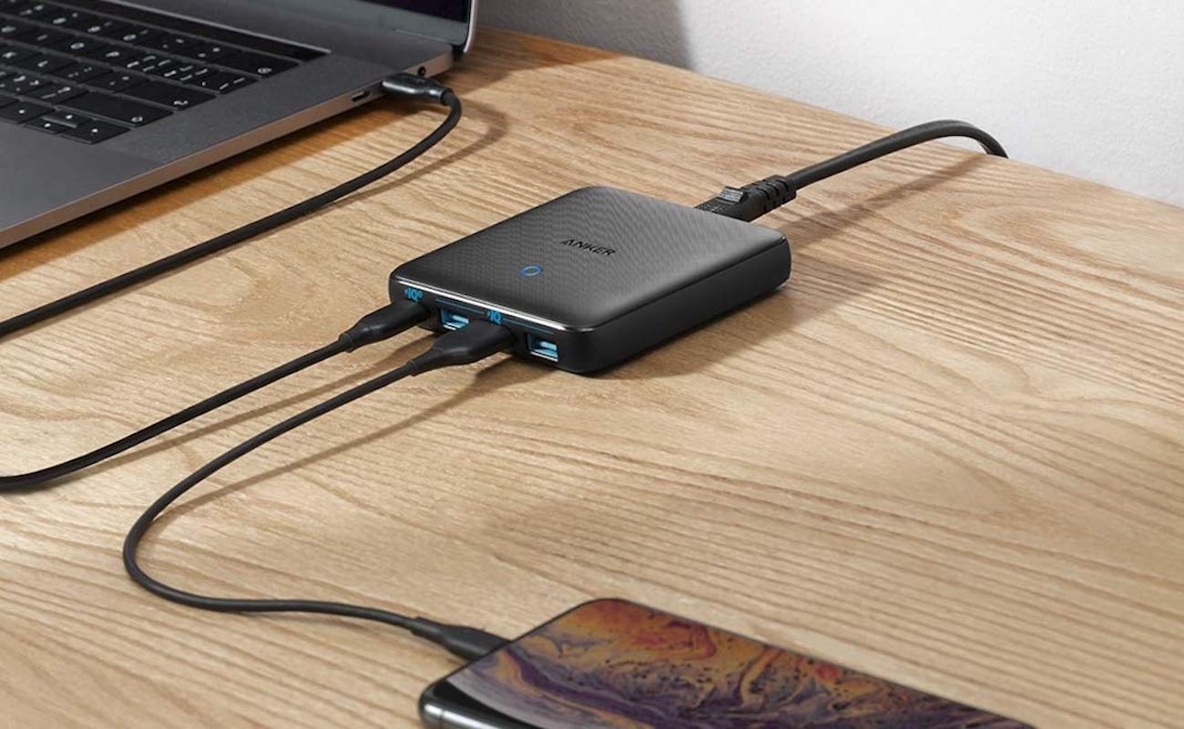 Anker PowerPort Atom III Slim (Four Ports) High-Speed USB-C Charging: Charge USB-C notebooks including Dell XPS 13 and MacBook Air 2018 at full speed via a 45W USB-C port. Charge 4 Devices Simultaneously: A PowerIQ 3.0 enabled USB-C port pumps out a max 45W output to charge virtually any USB-C device at top speed, while 3 USB ports share a total of 20W to provide optimized charging for mobile devices. Ultra-Slim: By swapping out silicon for gallium nitride (GaN), we’ve been able to create one of our slimmest USB-C chargers—without compromising power. Universal Compatibility: Anker’s signature PowerIQ 3.0 technology provides high-speed charging to virtually any mobile device. What You Get: PowerPort Atom III Slim (Four Ports) USB-C Charger (cable not included), 5 ft detachable power cord, adhesive strip, welcome guide, our worry-free 18-month warranty, and friendly customer service.