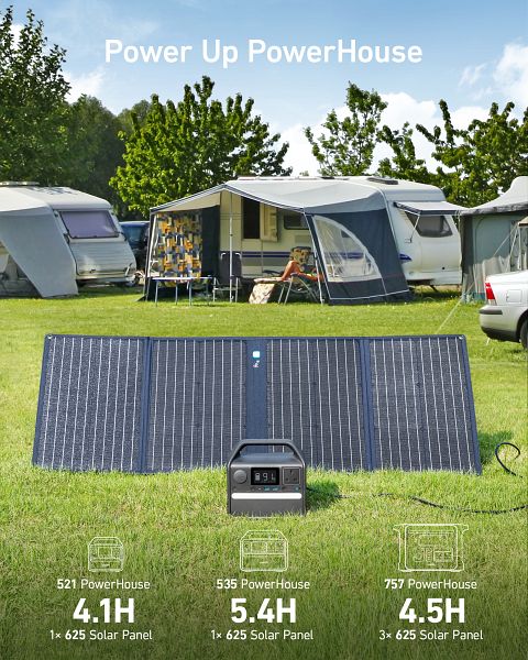High Conversion Efficiency: The solar panel converts up to 23% of sunlight into solar energy, charging your solar generators even on cloudy days. Smart Sunlight Alignment: Equipped with Anker’s proprietary Suncast technology, adjust the solar panel properly to capture direct sunlight for maximum charge. Made for PowerHouse: Anker 625 Solar Panel is compatible with PowerHouse 521, 535, and 757 (sold separately), making it an ideal all-in-one power solution for road trips, camping trips, RVs, and more. The lightweight solar panel features a USB-C and a USB-A output port to charge 2 devices at the same time.
