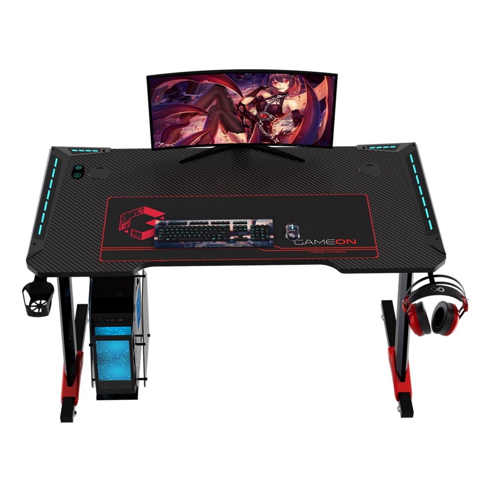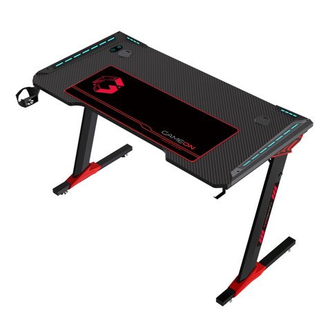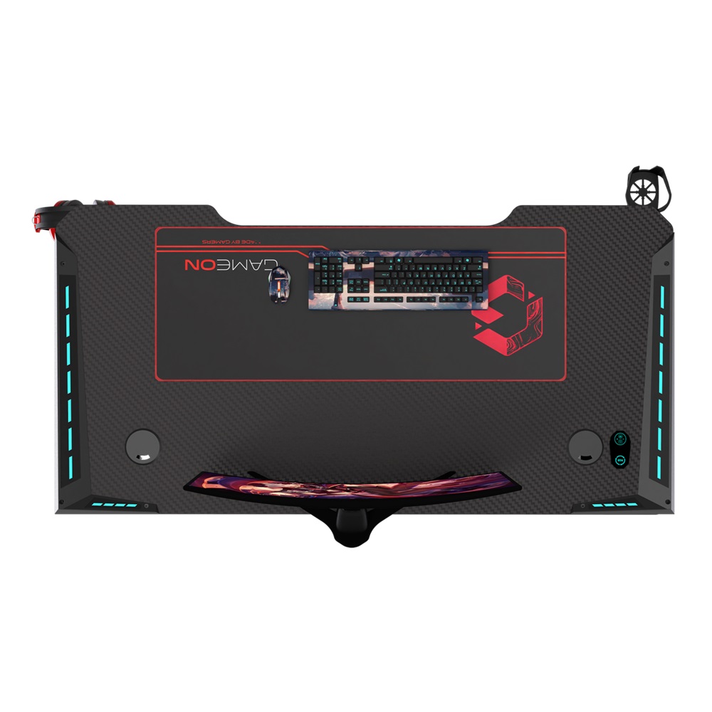 GAMEON Raptor-Il gaming desk is covered ith tough and durable carbon fiber texture surface, spaciuos enough to hold all those accessories you need while gaming.