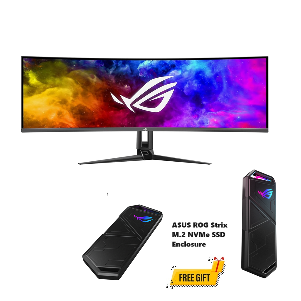 ASUS 49″ ROG Swift OLED PG49WCD 144Hz 0.03ms Curved QD-OLED, KVM, USB-C 90W, HDR400, HDMI 2.1 Gaming Monitor + (FREE GIFT) ASUS ESD-S1CL ROG Strix Arion Lite M.2 NVMe SSD Enclosure