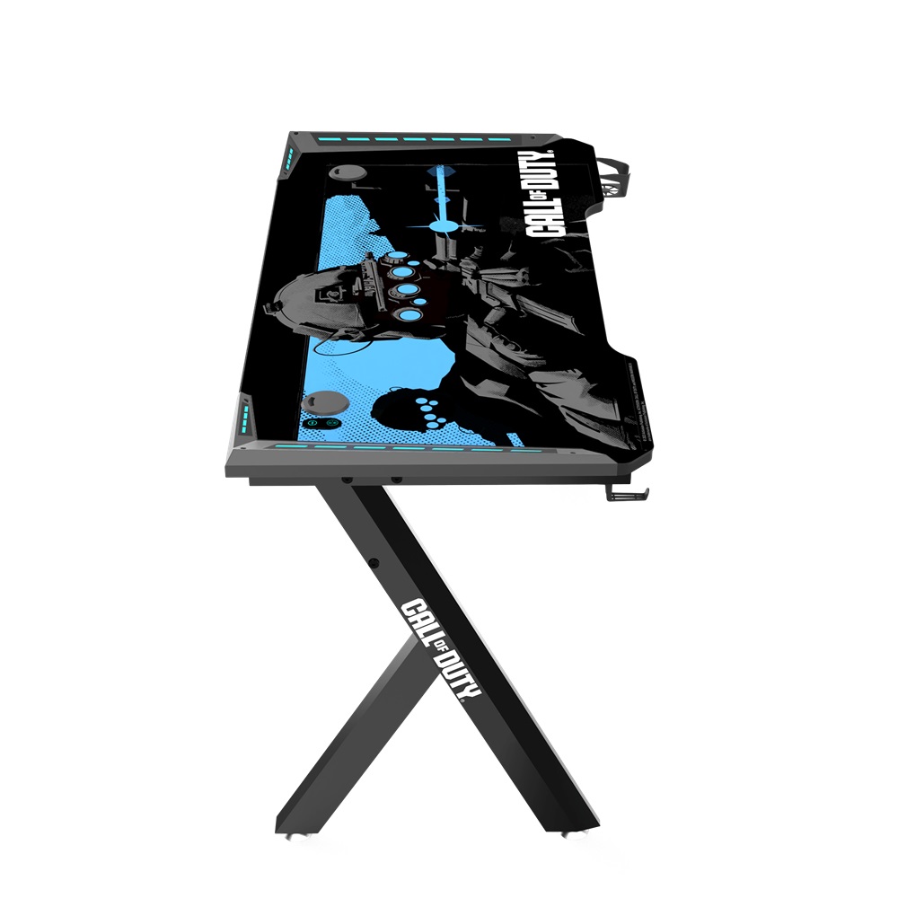 - GameOn Call Of Duty (COD) Hawksbill Series, Black/Blue, RGB Flowing Light Gaming Desk With Mouse pad, Headphone Hook & Cup Holder