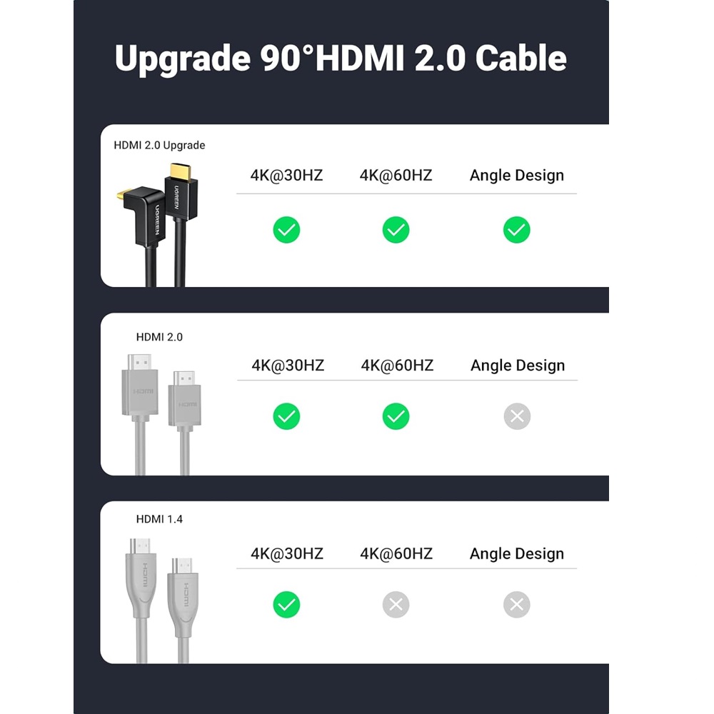 - UGREEN 10173 HDMI Cable, Right Angle, 4K 60Hz, 90 Degree – 2m