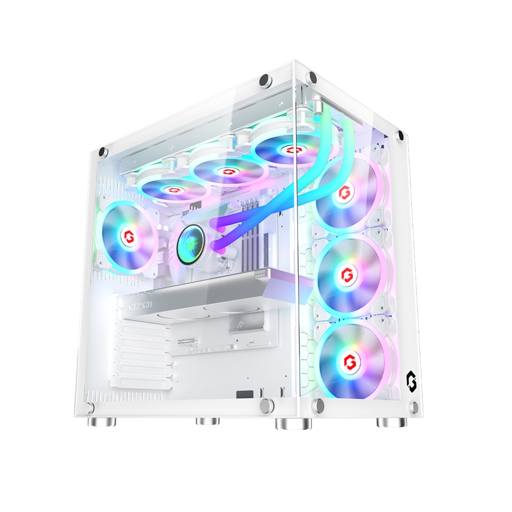 - GameOn Emperor Arctic II Series Mid Tower Gaming PC Case – White (7-Fans)