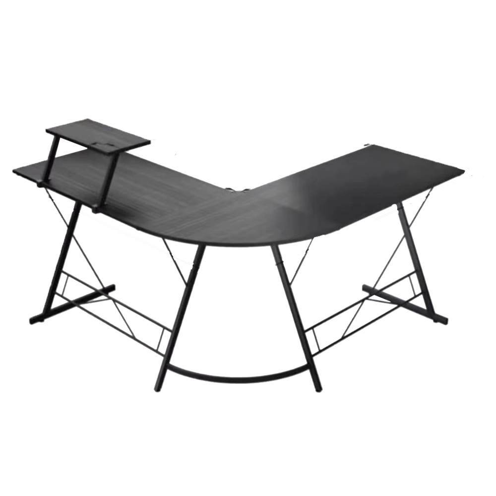 - GameOn L-Shaped Slayer I Series Gaming Desk & Table Top With Accessories Stand – Black