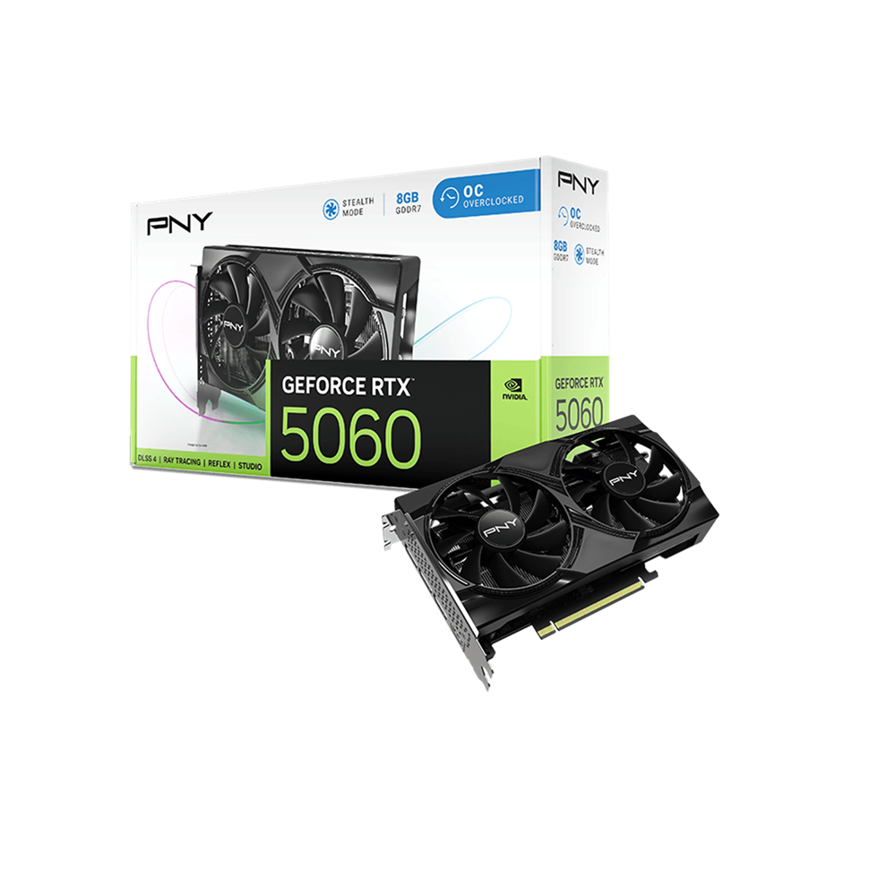 - PNY 8GB GeForce RTX 5060 Overclocked Dual Fan GPU VGA Graphic Card
