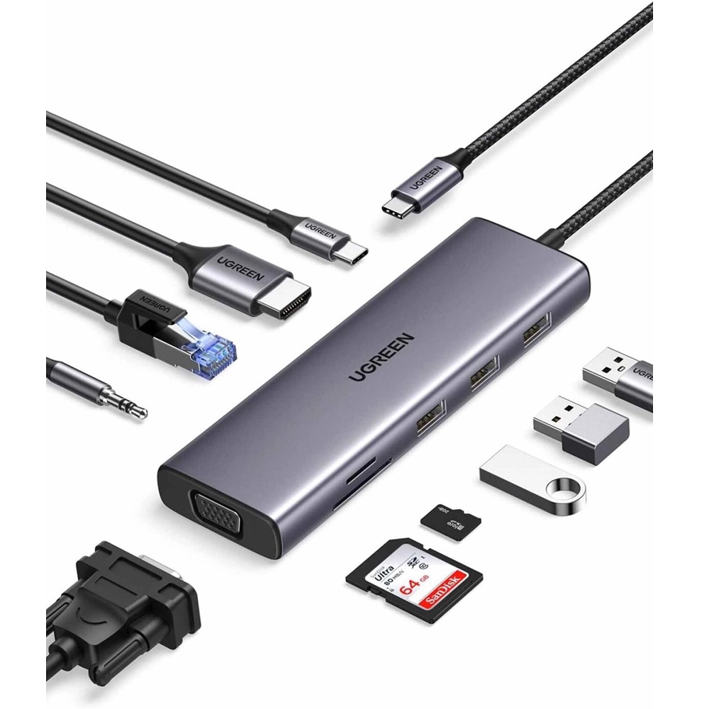 UGREEN CM498 USB-C 10in1 Hub Multifunction Adapter 100W, HDMI, VGA, LAN. Card Reader
