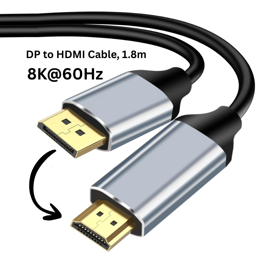 - DisplayPort DP to HDMI 8K 60Hz Cable M/M, 1.8m