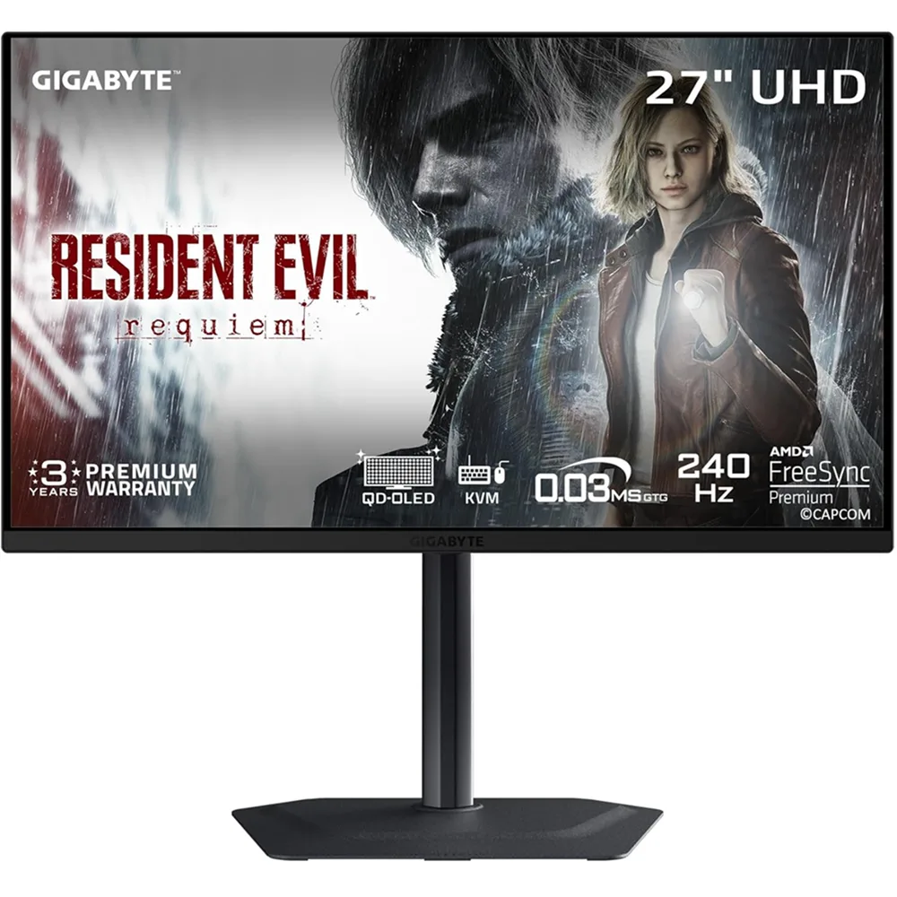 Gigabyte 27″ Tandem QD-OLED UHD 4K Resolution 3840 x 2160 240Hz / 0.03ms Competitive Edge KVM One for All / Tactical Switch 2 x HDMI 2.1 / Displayport 1.4 / USB-C / 3.5mm
