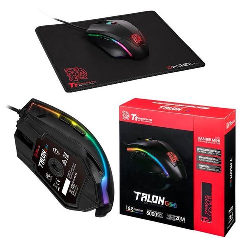 Thermaltake TALON ELITE RGB GAMING GEAR COMBO, Optical Mouse WITH Mouse Pad, 5000DPI, Smooth NON-Slip Surface, MO-TER-WDOTBK-01